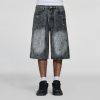 This pair of men’s denim shorts is made of high-quality canvas material, combined with full-color print design and shining rhinestone decoration to create a unique fashion style. The canvas fabric is tough and durable, with good breathability and comfort, suitable for daily leisure and outdoor activities. The loose version design provides ample space for activities and is easy to wear. The rhinestone embellishment makes the whole shorts more shining, showing personality and taste, especially suitable for men who pursue unique fashion styles. Whether it is paired with a simple T-shirt or a fashionable top, it can be easily controlled and become a highlight item in the summer look.