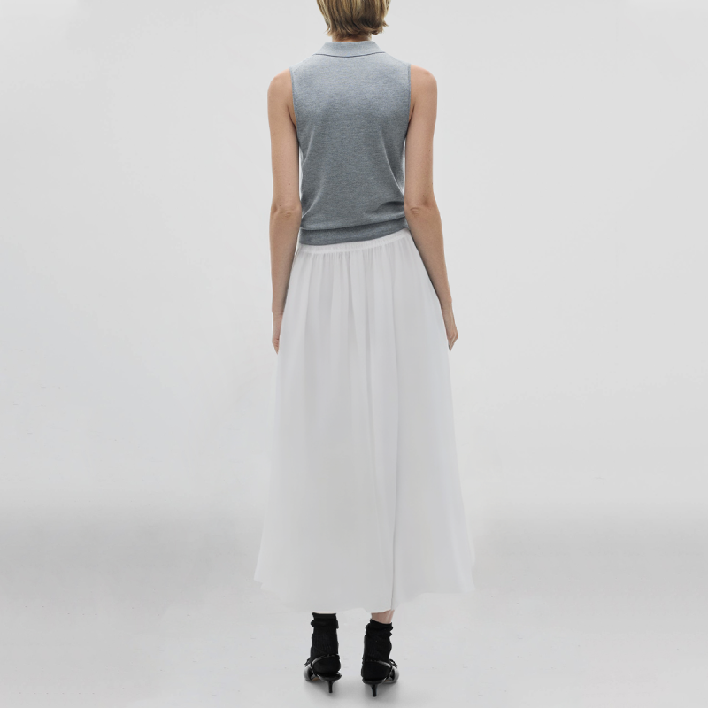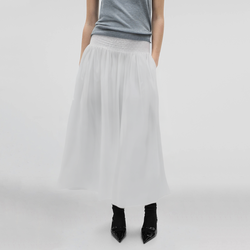 This white long skirt for women is made of high-quality polyester woven fabric, which is soft to the touch, light in texture, and has good breathability, making it suitable for spring and summer. The skirt is designed as a classic A-line skirt, which is long and reaches the calf, elegant and natural, and can well modify the leg lines. The waist is designed with elasticity, which flexibly fits the body curve, provides a comfortable wearing experience, and is convenient for daily activities. The overall design is simple and generous, without additional decoration, showing a style that combines fashion and leisure. The garment dyeing process ensures the uniformity and durability of the color, and is an indispensable and versatile item in the summer wardrobe.