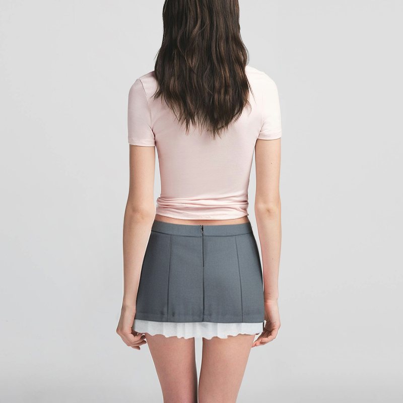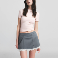 This mini skirt adopts classic solid color design, supplemented by delicate lace decoration at the bottom, adding feminine elegance and romance. The skirt body is made of high-quality polyester woven fabric, which is light and smooth, with good breathability, suitable for spring and summer. The natural waistline design fits the body perfectly, enhances the overall contour, and the skirt length is mini style, showing fashion vitality.