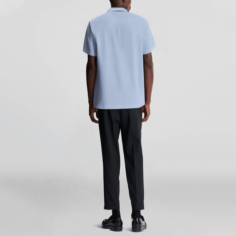 This men’s shirt is made of high-quality 100% cotton wrinkle-free poplin fabric, which is soft to the touch and extremely breathable, especially suitable for spring and summer. The fabric has been specially treated with a wrinkle-free process to reduce wrinkles, maintain a neat and clean appearance, and is convenient for daily care. The classic blue mini plaid pattern is simple and stylish, giving the overall design a unique visual layering. The stand-up collar design adds a modern and fashionable atmosphere while taking into account comfort and modifying the neck line. The short-sleeved design is suitable for hot weather, giving you a relaxed and comfortable wearing experience.