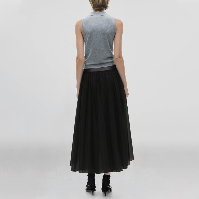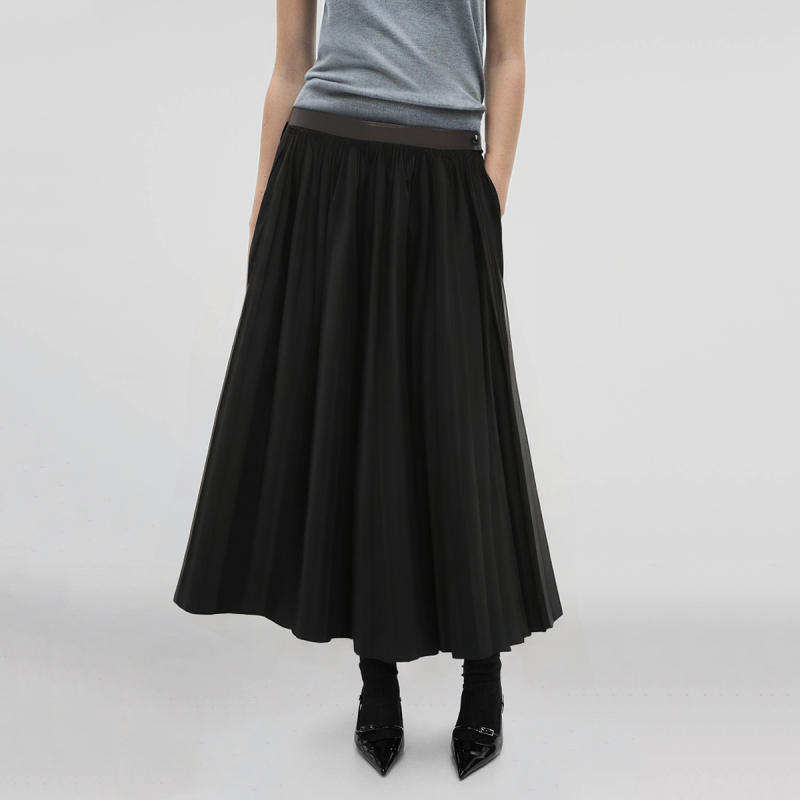 2. Mini A-line skirt design, showing slender legs, highlighting the youthful fashion sense of women.