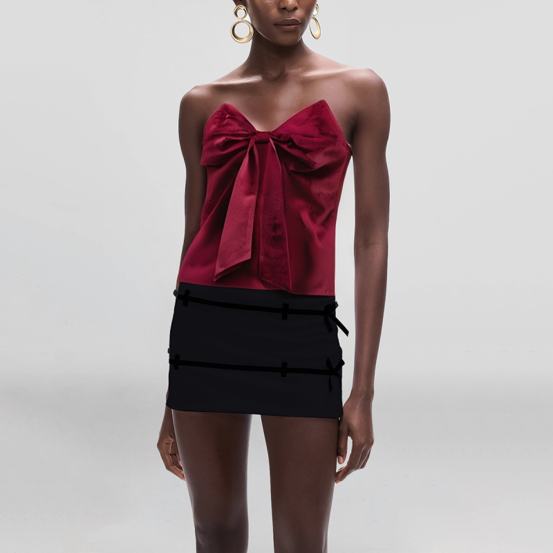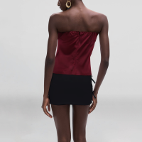 Strapless front bow tie design red hot sale casual fashion women’s vest Product Details This red strapless women’s vest adopts a classic solid color design. The eye-catching red tone shows enthusiasm and vitality. It is an indispensable eye-catching item in the summer wardrobe. The exquisite bow tie decoration on the front chest adds a touch of sweetness and playfulness, injects details into simplicity, and enhances the overall fashion sense. The use of all-polyester fabrics has a smooth touch, light and breathable, suitable for wearing in hot seasons, refreshing and comfortable. The strapless design makes the shoulder and neck lines softer and more beautiful, and can be matched with suspender underwear or a light cardigan to create a variety of shapes. The length of the top is a regular style, which is very suitable for matching with high-waisted shorts, skirts or jeans. Whether it is going out, dating or holiday travel, it can show confident and elegant personal charm.Feature 1. Fashionable front bow tie design: embellish the chest, adding smart details and sweet temperament. 2. Strapless design: Shows off the shoulder and neck lines, cool and breathable, highlighting the feminine contours.