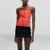 This women’s vest shows a bold personality in minimalism, full of confidence and modernity. Made of high-quality polyester fabric, it is light and comfortable, skin-friendly and breathable, especially suitable for summer or warm climates. The short design highlights the waistline and optimizes the body proportions. The strapless design is bold and refreshing, and has the independent charm of urban women. The front is decorated with exquisite buttons to enhance the texture of the details, making the overall shape simple but not monotonous. Whether paired with jeans, short skirts or wide-leg pants, it can show good taste and is an indispensable trendy item in the summer wardrobe.Feature