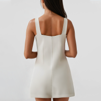 This white zipper spaghetti strap mini slide skirt combines a minimalist solid color design with a light version, showing a refreshing and natural summer style. The sleeveless spaghetti strap structure highlights the feminine and soft shoulder and neck lines; the tube top design is matched with a back or side zipper, which is easy to put on and take off while maintaining a simple and fashionable sense.