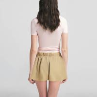 This khaki shorts adopts a modern casual design, combining practical and fashionable elements to create comfortable and multi-occasion women’s shorts. Selected all-polyester woven fabrics, the fabric texture is tough and lightweight, both breathable and durable, suitable for daily wear. The garment dyeing process ensures that the shorts are bright and long-lasting, and the solid khaki color is versatile and easy to match with various tops.